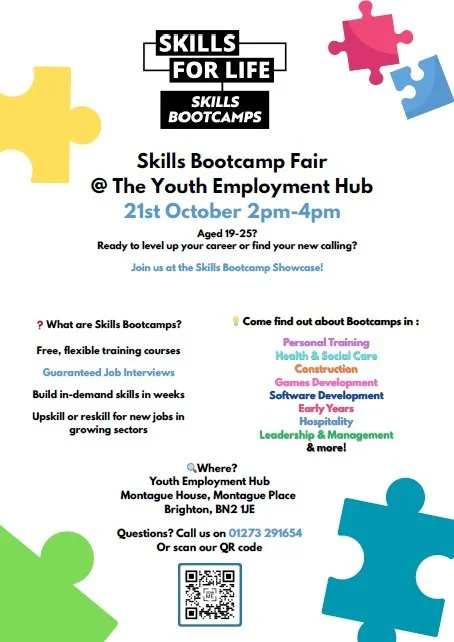There is a Skills Bootcamp Fair at the Youth Employment Hub next week, on Tuesday the 21st October, 2pm-4pm.
