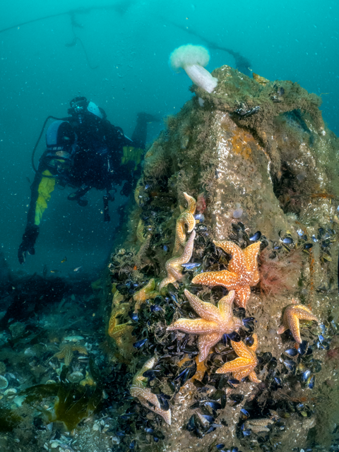 Use of scour protection is standard practice at offshore wind farms, and usually involves placing layers of rock on the seabed around the base of a turbine foundation. Reef cubes® offer an alternative that provides equally effective protection from erosion but also enhanced biodiversity. They are modular, lighter, easy to install, and designed to turn protection zones into thriving ecosystems. The structure of the cubes provides habitats for marine life, supports fish populations, shellfish colonisation, and broader ecosystem development. At just one of the Rampion turbines, the Reef cubes® are providing a habitat surface area of 25,000 square metres.